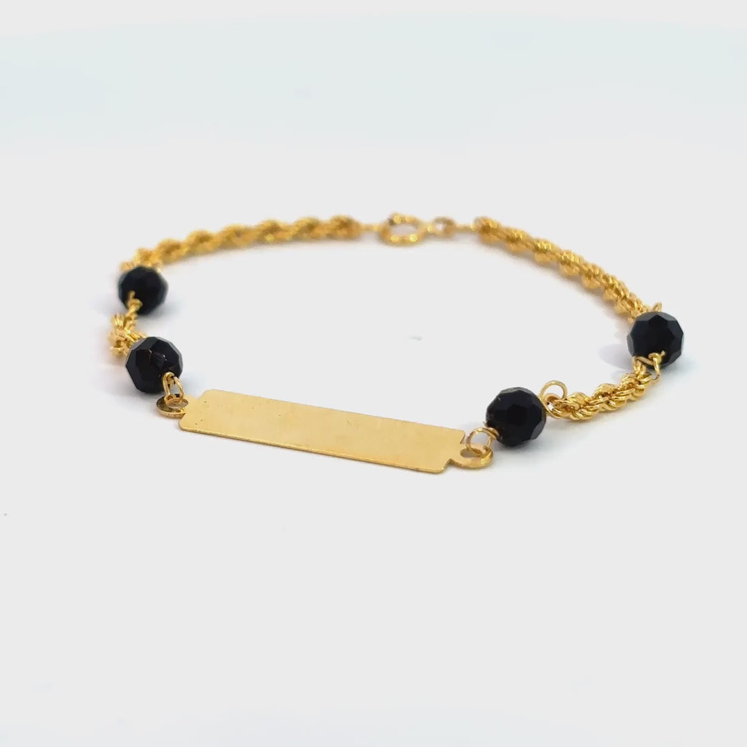 ''Kibri'' 14K babybracelet met ovale naamplaat met rope chain en (ogri ai) kralen