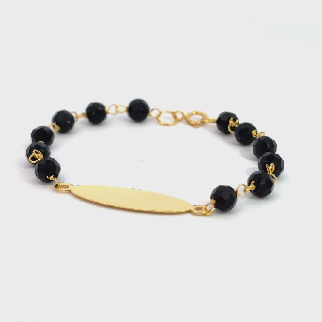 ''Mesi'' 14K ovale babybracelet met (ogri-ai) kralen en naamplaat