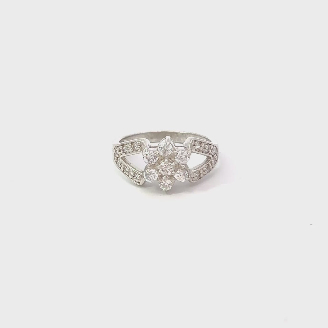 Zilveren ''Rihanna'' ring met Bloem van Zirkonia’s