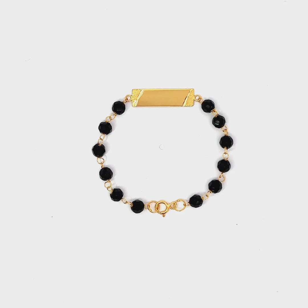 ''Indigo'' Gouden 14k babybracelet met ogri-ai kralen en naamplaat