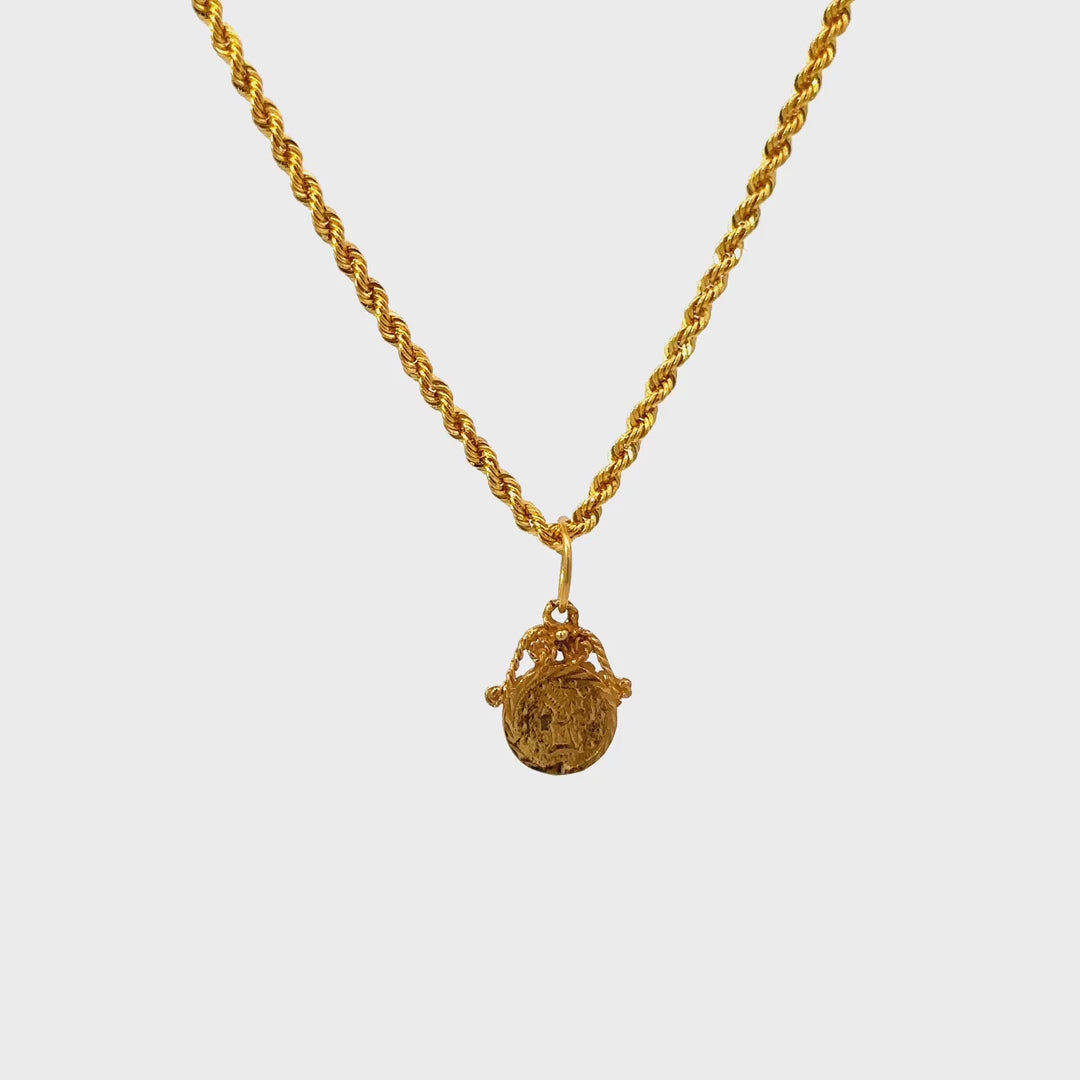 ''Lyric'' Gouden 14k rope chain (kinder)ketting met gouden munt