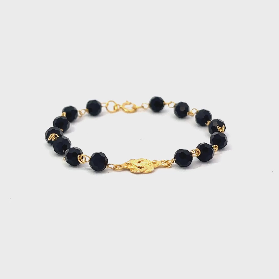 Bij ons koop je de mooiste Surinaamse sieraden, zoals deze gouden kinderbracelet met een mattenklopper en ogri ai kralen.