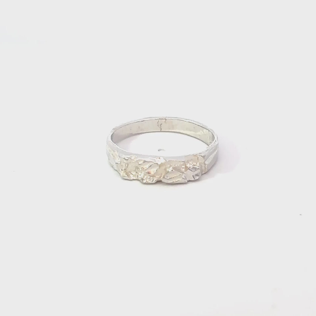 Deze zilveren piet piet ring heeft een ruwe bovenkant, een gladde onderkant en een gladde band. Piet Piet staat voor 'aarde'. Het ruwe karakter symboliseert de structuur van de aarde, waardoor je altijd een stukje van jouw land bij je draagt en gegrond blijft.