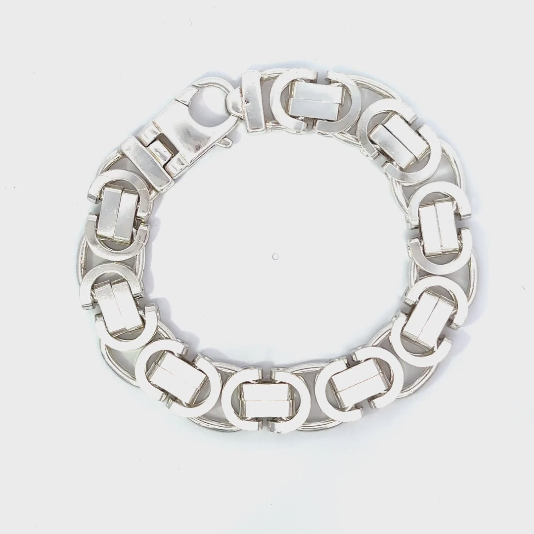 De armband heeft een gewicht van ongeveer 86,2 gram, is 23,5 centimeter lang, 16 millimeter dik en is gemaakt van het edelmetaal 925 zilver. Deze platte koningsarmband is een massief model, dit betekent dat de armband volledig gevuld is met zilver.