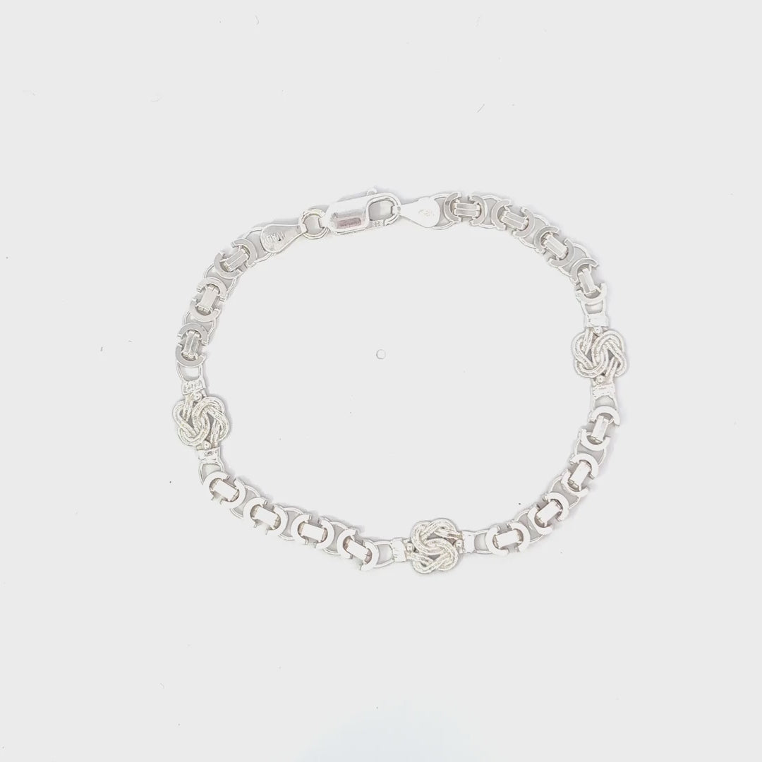 ''Drew'' Zilveren platte koningsarmband met mattenkloppers (9mm)